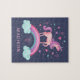 Um unicórnio mágico, bonito, com corações e um arco-íris decoram esta quebra-cabeça. Personalize com o nome dela. Um presente divertido para uma garota. Projetado para você pelo Blackberry Boulevard.