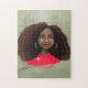retrato bonito bonito da menina dos desenhos animados do afro-americano do quebra-cabeça A dos trabalhos de arte da menina do afro-americano com o cabelo textured e a ilustração bonita dos olhos verdes