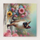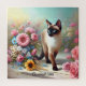 Um gato siamês elegante caminha pelas flores neste design vibrante moderno.