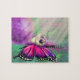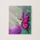 Uma borboleta fofa de olhos grandes se posiciona em um alium.