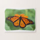 Uma bela borboleta monarca com suas asas espalhadas, aterrissou em uma flor de tithonia. O fundo verde suave faz a imagem "pop".