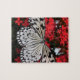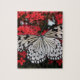 Quebra-cabeça Borboleta Preta e Branca em Flores Vermelhas
