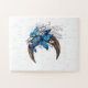 Quebra-cabeça Borboletas azuis em crescente de madeira