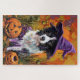 Quebra-cabeça Borda Spooky Collie Halloween Witch E Pumpkin