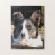 Um belo cão fazenda collie na fronteira foi apanhado escondido atrás de um trailer.