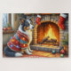 A cozy Christmas artwork featuring a beautiful Border Collie sitting beside a glowing fireplace adorned with stockings and sparkling Christmas lights. This festive holiday scene captures the Border Collie’s intelligence, loyalty, and gentle nature, making it perfect for dog lovers and warm seasonal decor. Add a touch of heart and holiday cheer to your home with this charming pet-inspired artwork.