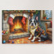 Quebra-cabeça Boston Terrier Fireplace with Christmas Lights