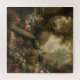 pintura botânica vintage de três pavões num jardim inglês cercado por flores pastel