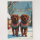 This festive design captures the joyful spirit of the holiday season, featuring an adorable dogs.Nestled in a winter wonderland, complete with a decorated Christmas tree, and beautifully wrapped presents. Snowflakes gently fall, adding a magical touch to the scene, while the vibrant colors of the holiday decorations create a warm and cheerful atmosphere.