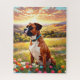 Boxer dog in beautiful field of flowers with sunset. Puzzles, puzzles in tins, planners, notebooks with this design in my stores. Add text to personalize.. Lots of pet and scenery designs in my stores. Add this design to other products. Add text.