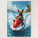 An energetic Boxer captured riding a jet ski across ocean waves in a bright coastal setting. The dynamic motion and vibrant colors create an exciting summer scene.