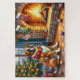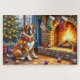 Quebra-cabeça Boxer Sitting by Fireplace with Christmas Lights