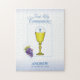 Receber comunhão pela primeira vez é uma ocasião muito especial. Este presente de parabéns, lembrança, doação e festa essenciais para um garoto em sua Primeira Comunhão Sagrada será perfeito com o cálice, o hospedeiro e as uvas com fundo azul macio.