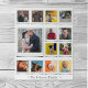 Personalize este quebra-cabeça de serra gigante com 13 fotos quadradas organizadas em um layout de colagem em grade, com uma imagem grande e o restante pequeno. Adicione seu nome de família ou legenda personalizada na parte inferior da cinza de chic.