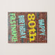 Este design de quebra-cabeça com tema de aniversário divertido apresenta uma mensagem como "HAPPY 80 BIRTHDAY, FIRSTNAME!", onde o nome pode ser personalizado. O fundo apresenta uma representação de uma parede de tijolos constituída por alguns tijolos de cor castanha avermelhada. O texto de mensagem personalizável apresenta cores como azul, amarelo e verde, e tem uma aparência inspirada pela do grafite pintado. Um quebra-cabeça como este pode ser usado como uma maneira divertida de enviar desejos de aniversário a alguém que comemora seu oitavo aniversário, e que talvez goste muito de fazer quebra-cabeça. [~Z0000285]