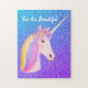 O Quebra-cabeça de Glitter Jigsera Azul Roxo-Roxo do Unicórnio é uma excelente de ocupar o seu tempo e manter a sua mente afiada. Ele é projetado com um grande unicórnio branco e tem bonito cores pastel para cabelos e flores no topo da cabeça. O fundo é falso brilho e faz o unicórnio pop. "Você é bonita" é a frase inspiradora no topo e você pode personalizar com seu próprio texto clicando na opção personalizar modelo.