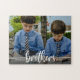 Quebra-cabeça de fotografia moderna com solteiro de fotografia branco quadro branco e script de tipografia ''irmãos'' em letra manuscrita de tendência. Personalize ainda mais com nomes.