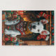 Quebra-cabeça Bull Terrier com Lareira de presentes de Natal