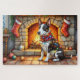 Quebra-cabeça Bull Terrier Fireplace with Christmas Lights