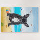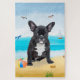 Cachorro fofo sentado na praia é uma ideia de presente perfeita para alguém que ama esta raça de cachorro.