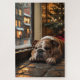 A heartwarming holiday scene featuring a dog sitting peacefully beside a window, surrounded by glowing Christmas lights. This cozy and festive design captures the spirit of the season, perfect for adding warmth and charm to any space. Ideal for dog lovers and holiday decor enthusiasts.