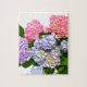 Um clássico e romântico encanto de moda Hydrangeas. Uma bela buquê de verdes azuis, púrpura e híbridos cor-de-rosa. Foto de H Cooper