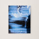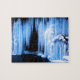 Uma fotografia de uma cachoeira congelada, é uma cena muito calma. O azul e o branco colorem a surpresa da AE!