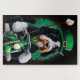 Quebra-cabeça Cachorro Bernedoodle dirigindo Ruas de bicicleta.