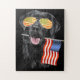 Quebra-cabeça Cachorro | Black Labrador EUA Flag