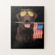 Quebra-cabeça Cachorro | Chocolate Labrador EUA Bandeira America