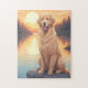Cachorro Golden Retriever, perto de um belo lago. Muitos designs de animais de estimação e paisagens nas minhas lojas. Adicione este design a outros produtos. Adicione texto.