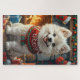 Quebra-cabeça Cachorro Samoyed Com Lareira De presentes de Natal