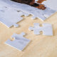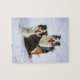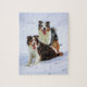 Homem australiano do pastor e cães fêmeas que sentam-se na língua da neve fora da boca em seguida que joga