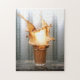 Uma fotografia estilizada de uma xícara de café matinal a saltar por todo o balcão. Talvez um cubo de açúcar tenha sido superdimensionado?