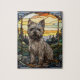 Quebra-cabeça com um Cairn Terrier dog feito em um modo de janela de vidro colorido. Perfeito para todos os amantes de cães.