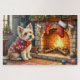 Quebra-cabeça Cairn Terrier Sitting Fireplace Christmas Lights