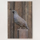 Uma fotografia de uma bela codorniz da Califórnia em um fundo de madeira de casca.