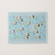 Este quebra-cabeça de calendário bonito da Parson / Jack Russell apresenta 13 JRTs ilustrados / PRTs com várias marcas de cabeça e preto e corpo, mais 13 bolas de tênis verdes espalhadas entre meses girados com rotação caprichosa sobre um fundo azul com um padrão de sotaque de abstrato girado em branco - cada um dos cães tem uma inclinação de cabeça encantadora - personalizada com seu nome - por katz_d_zynes