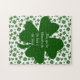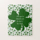 Dê aos amigos e à família uma Rua única. Saudações do Dia de Patrick com este quebra-cabeça de 11" x 14" com uma imagem de shamrocks e chapéus de topo em branco, um trevo verde-escuro de quatro folhas e uma bênção irlandesa opcional. Veja toda a Rua do dia de Patrick na categoria HOME na seção HOLIDAYS. Este produto não está associado nem afiliado ao titular original dos direitos de autor.