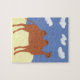 Divertido Quebra-cabeça com Arte de Cartoon Whimsical de um camelo de corcova caminhando sobre dunas de areia no deserto sob um céu azul escondido com nuvens. Criado com papel de construção e manipulado em Photoshop pela KLeighE do Whimsical Cartoon Art ™ da Hinterland Harmony