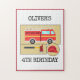 Este design apresenta um caminhão de incêndio vermelho, um capacete de fogo vermelho e um machado de bombeiro arranjados juntos em um fundo clássico. Ela aparece em muitos produtos, incluindo suprimentos para partes, convites de festas e presentes relevantes relacionados a temas.