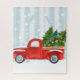 Quebra-cabeça Camionete vermelho do Natal em uma estrada nevado