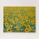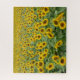 Campo de girassóis, muitos girassóis amarelos com folhas verdes para tornar um quebra-cabeça muito difícil, se não impossível