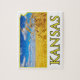 A beira de Kansas encheu-se com um campo de trigo e um céu azul