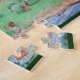 Cena de primavera de mulheres em vestidos tradicionais trabalhando em um campo. Edifícios e montanhas ao fundo. Belas artes pelo pintor russo Boris Kustodiev.