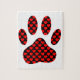 Pata de cão com padrão cardíaco. Desenho original em vermelho e preto.