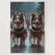 Este design festivo captura o espírito alegre da temporada de férias, apresentando cães adoráveis. Aninhados em um país das maravilhas de inverno, completo com uma árvore de Natal decorada e presentes lindamente embrulhados. Flocos de neve caem suavemente, adicionando um toque mágico à cena, enquanto as cores vibrantes das decorações de Natal criam uma atmosfera quente e alegre.