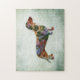Cão do Dachshund com um perfil gasto do design floral sobre um fundo verde pintado textured. Um presente bonito para um proprietário do animal de estimação.