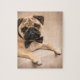 Cão bonito do pug que veste um laço preto. Filhote de cachorro do pug do cavalheiro.
