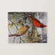 Um par de cardeais do norte (cardinalis de Cardinalis) empoleira-se em um arbusto cor-de-rosa nesta cena invernal. Uma ilustração do vintage desde 1915.